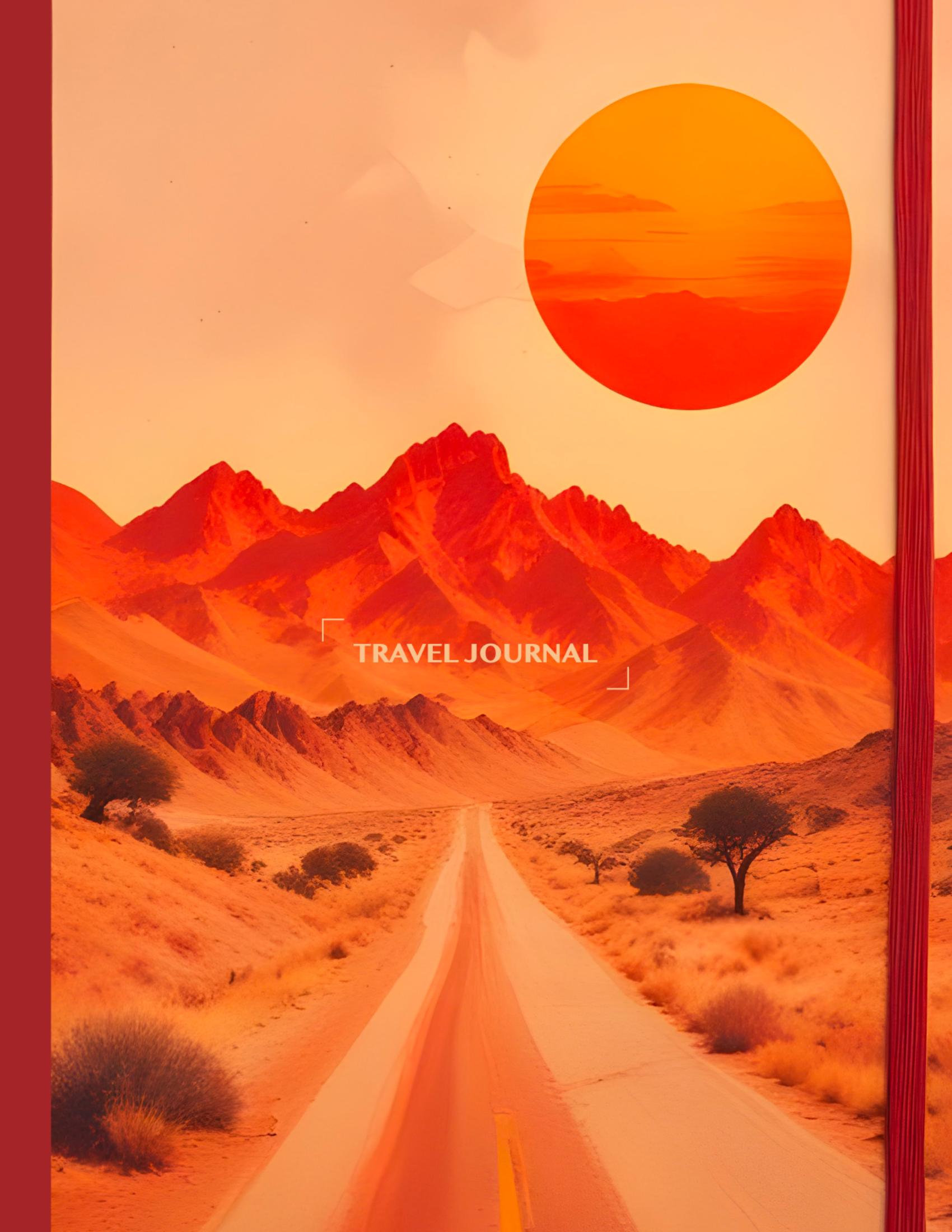 A blazing orange desert road under a powerful sun inspires adventurous thoughts and endless possibilities for your travel notes.