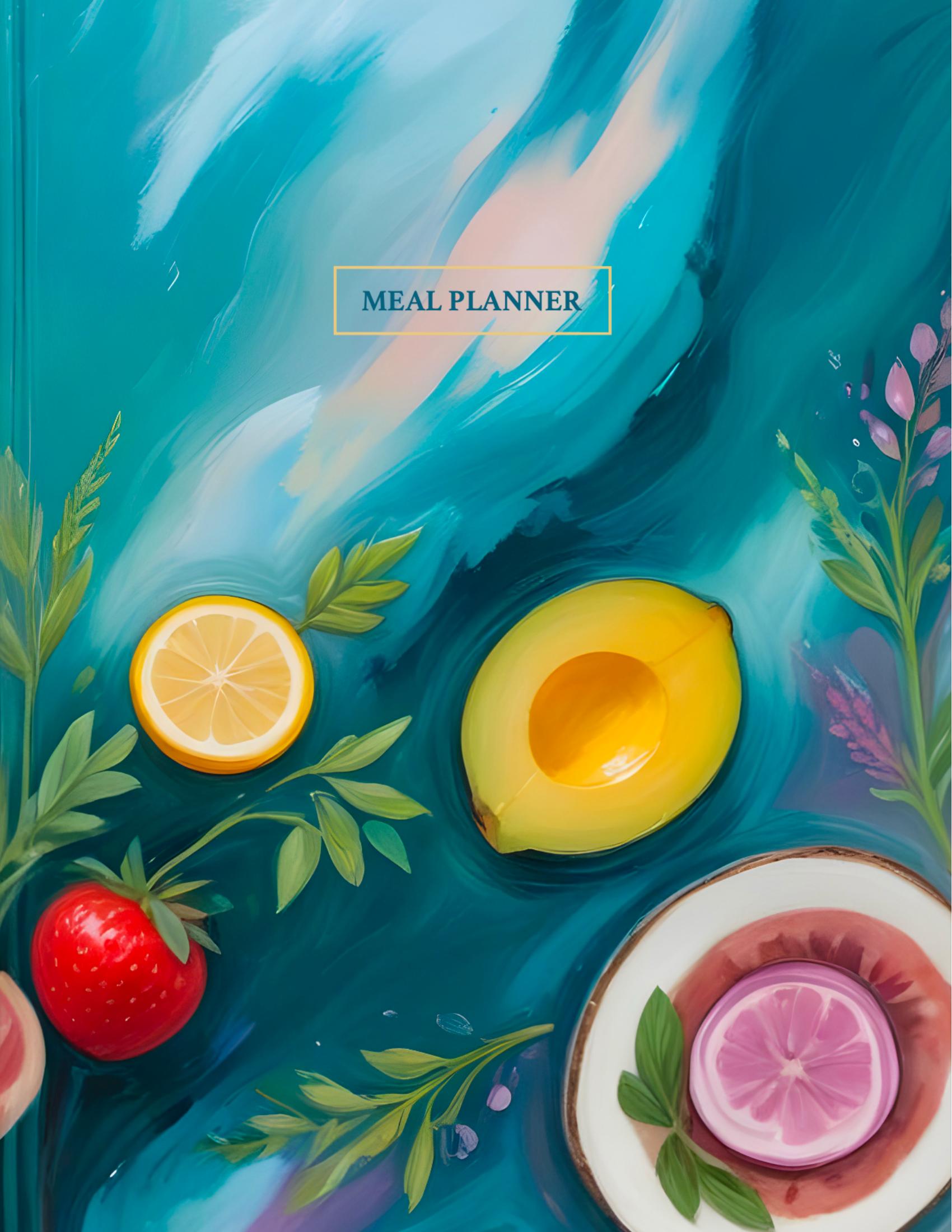 Dive into planning with a colorful array of fruits on a dynamic turquoise background. Perfect for vibrant meal inspirations.