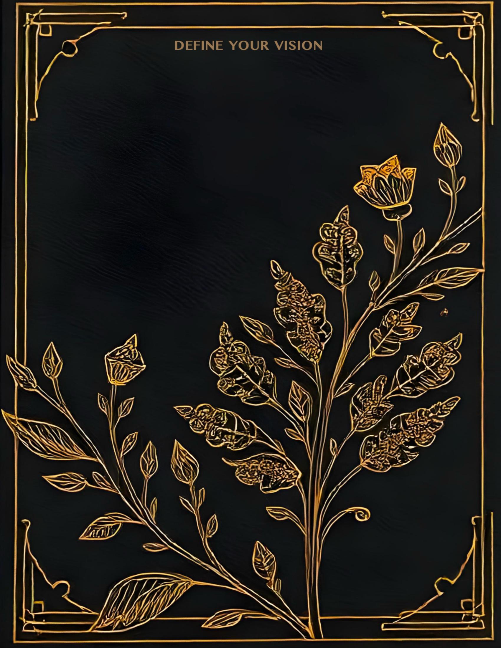 A black canvas highlighted with golden floral frames. Crafted for individuals with bold visions and refined aspirations.
