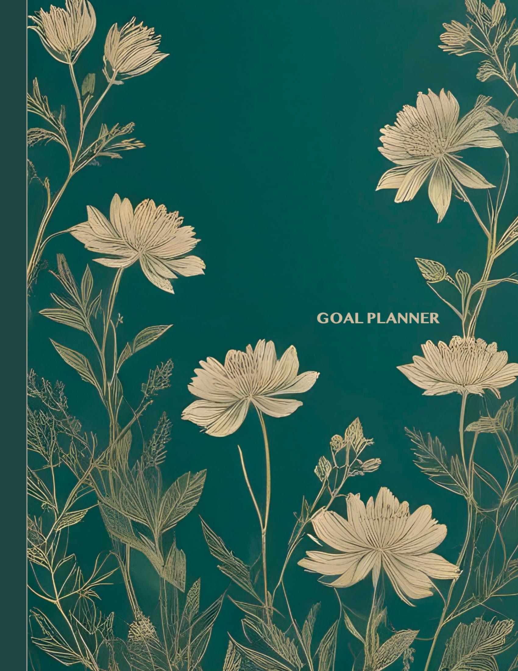 A deep green canvas adorned with elegant golden flowers. Perfect for those who seek harmony and clarity while setting their goals.