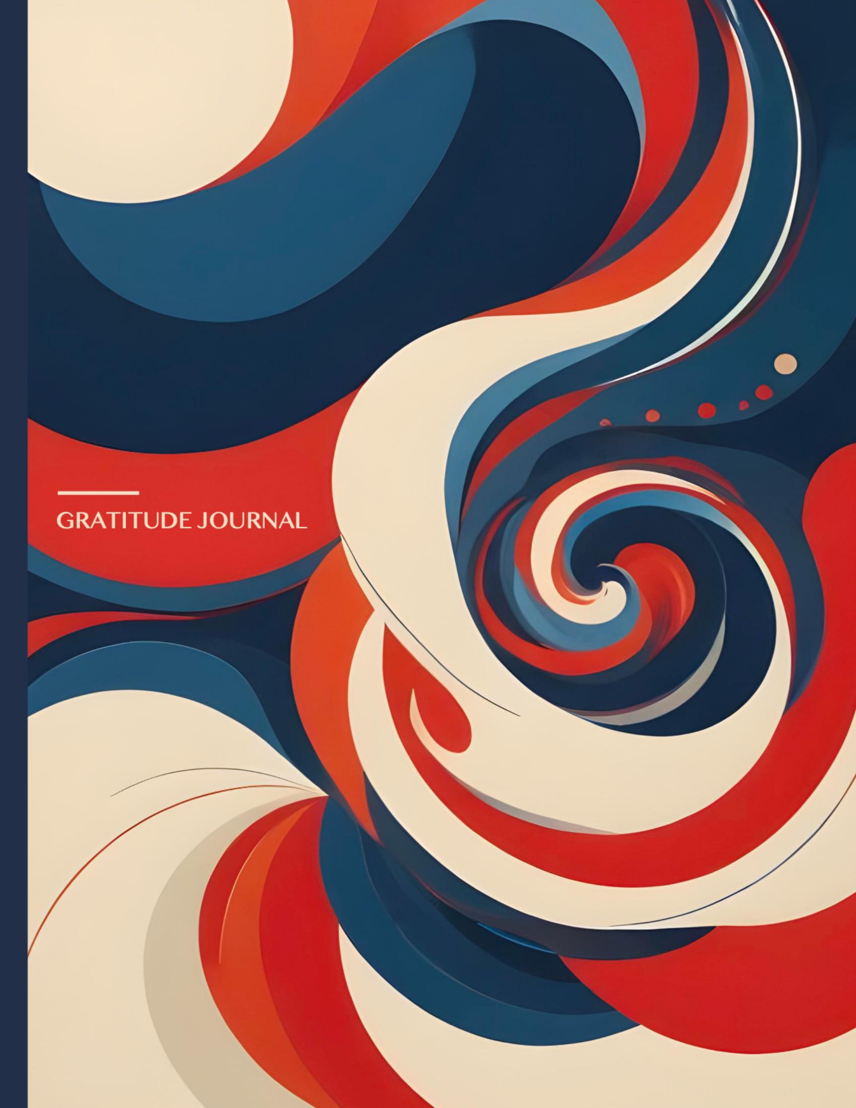 A vivid, kinetic swirl of red, navy, and cream—perfect for recording moments of appreciation with energy and passion.