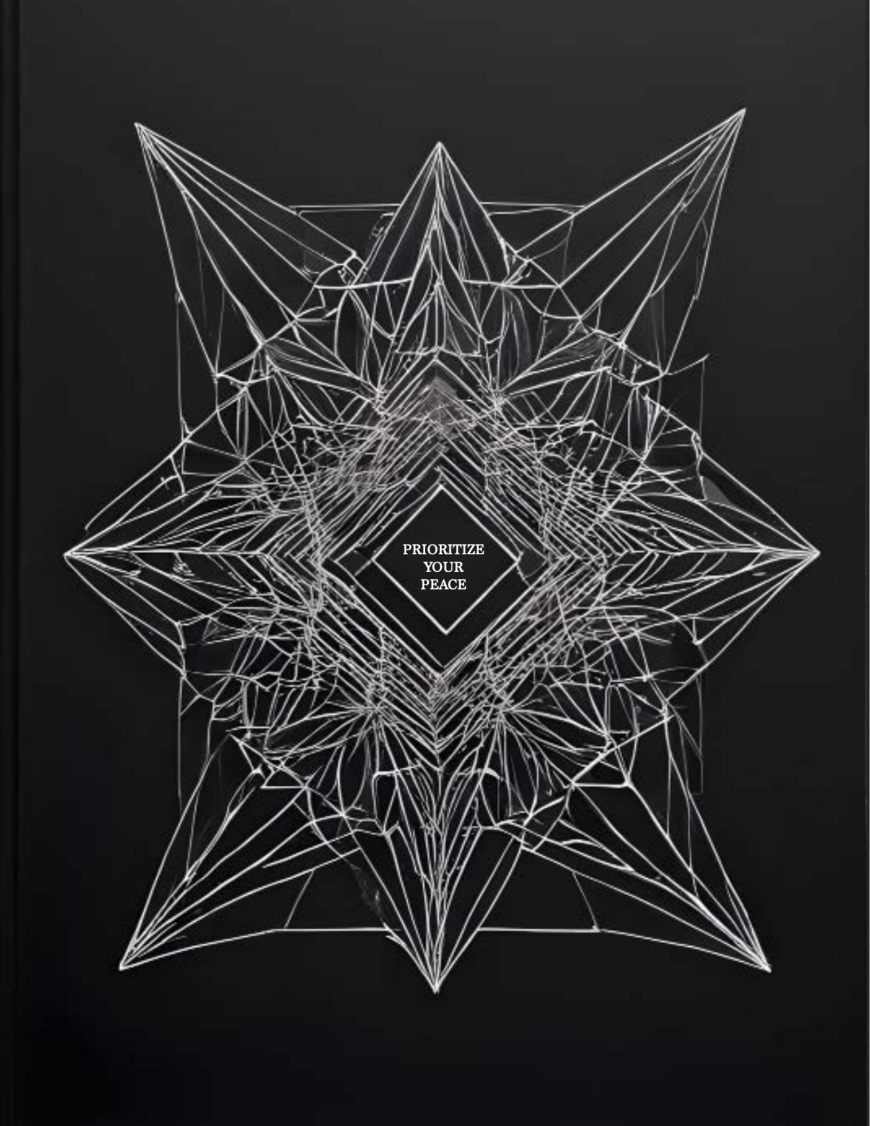 Minimalist black and white design with geometric lines, perfect for focused journaling and protecting your inner peace.