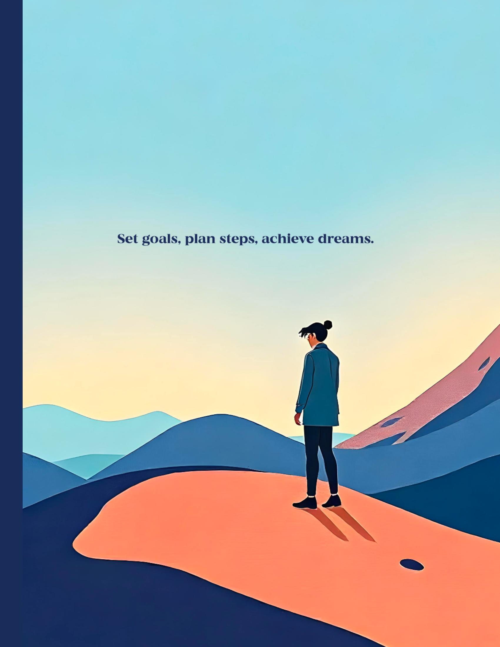 A lone figure stands over sun-washed hills, ready to conquer the day. Designed for goal setters with big dreams and bold plans.